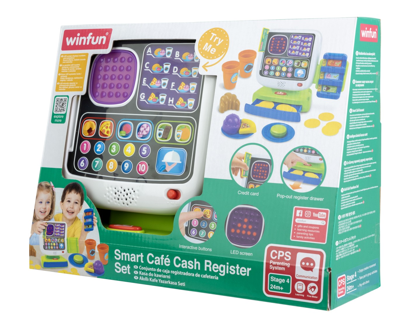 Casa de marcat pentru copii Winfun este o jucărie interactivă și educativă, ideală pentru cei mici de peste 2 ani. Cu lumini LED, butoane interactive, sunete realiste și accesorii de cafenea, această casă de marcat de jucărie transformă joaca într-o experiență distractivă și utilă pentru dezvoltarea copilului.