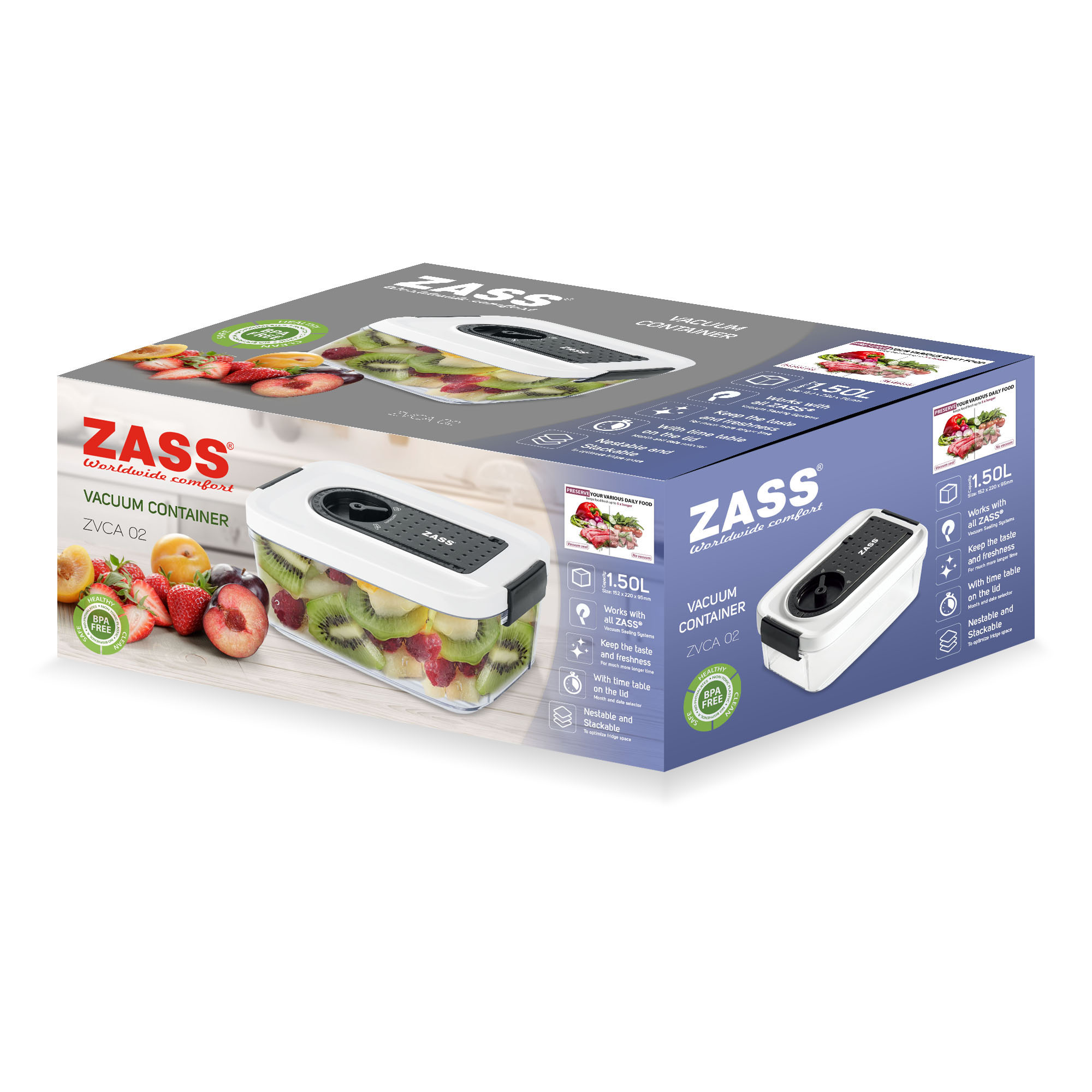 Păstrează alimentele proaspete mai mult timp cu această caserolă pentru vidat ZASS ZVCA 02, practică și ușor de folosit în orice bucătărie. Prin eliminarea aerului, recipientul ajută la menținerea prospețimii, gustului și texturii alimentelor, fiind ideal pentru depozitarea preparatelor gătite, fructelor, dulciurilor sau gustărilor. Designul transparent îți permite să vezi rapid conținutul, iar sistemul de închidere etanșă contribuie la o organizare mai eficientă în frigider.