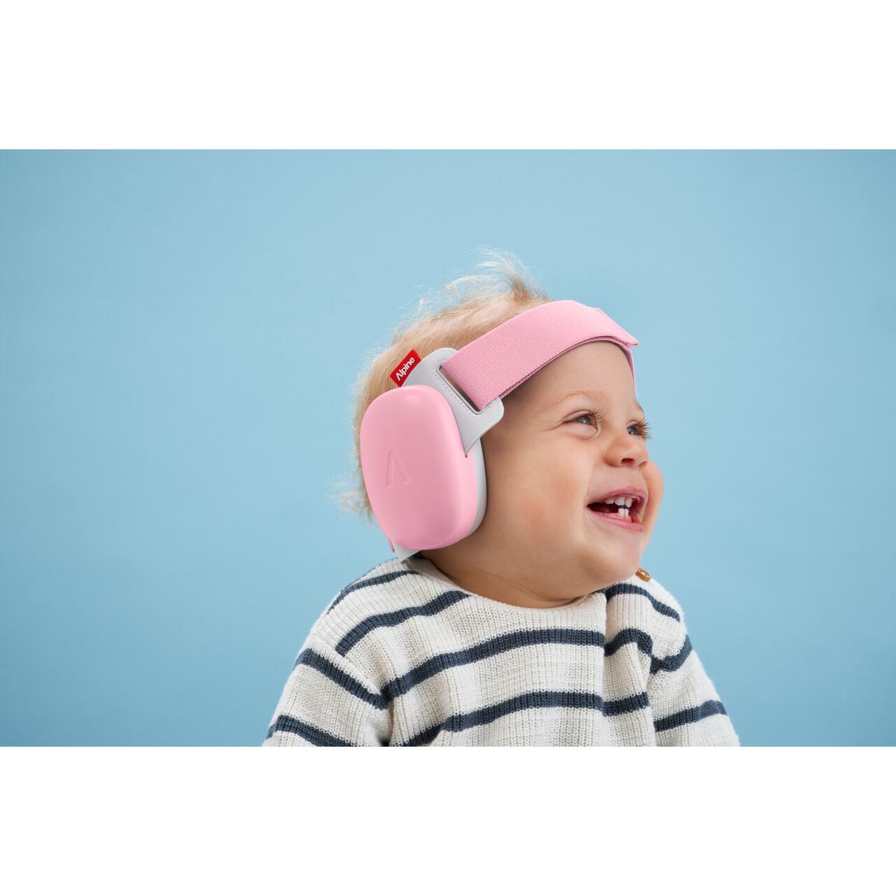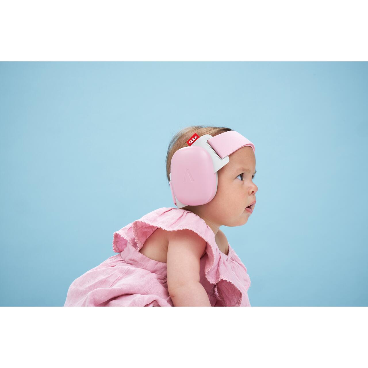Casti antifonice pentru bebelusi si copii pana la 4 ani, ofera protectie auditiva, SNR 24, roz, ALPINE Muffy Baby Rose Pink ALP29642