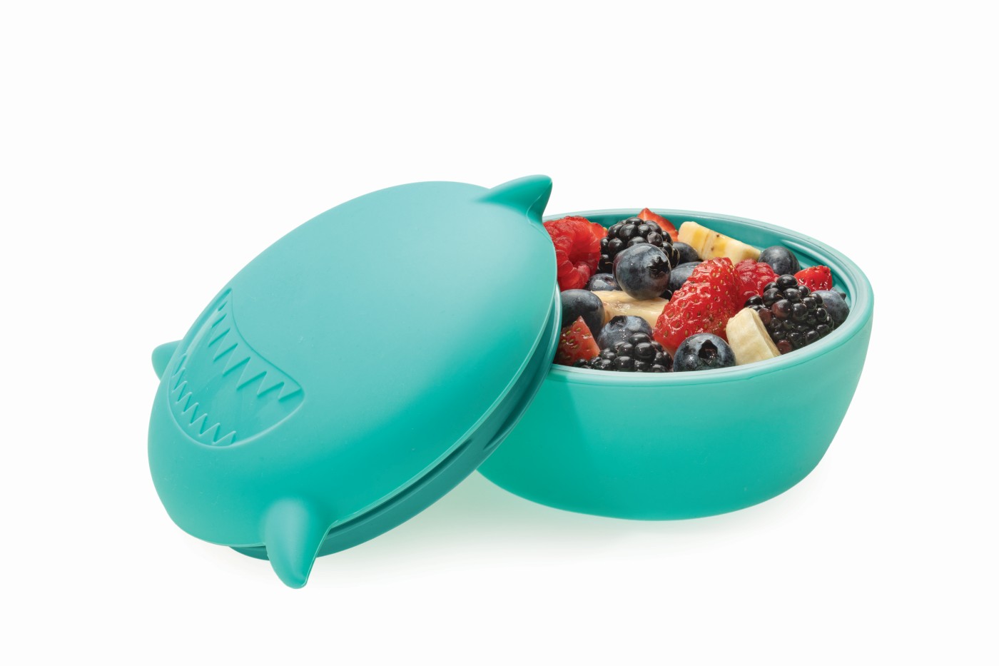 Acest bol din silicon pentru copii este usor de transportat in geanta sau in cutia de pranz si rezista bine la utilizarea zilnica. Designul prietenos in forma de rechin ii incurajeaza pe cei mici sa descopere mancarea cu mai mult entuziasm.
