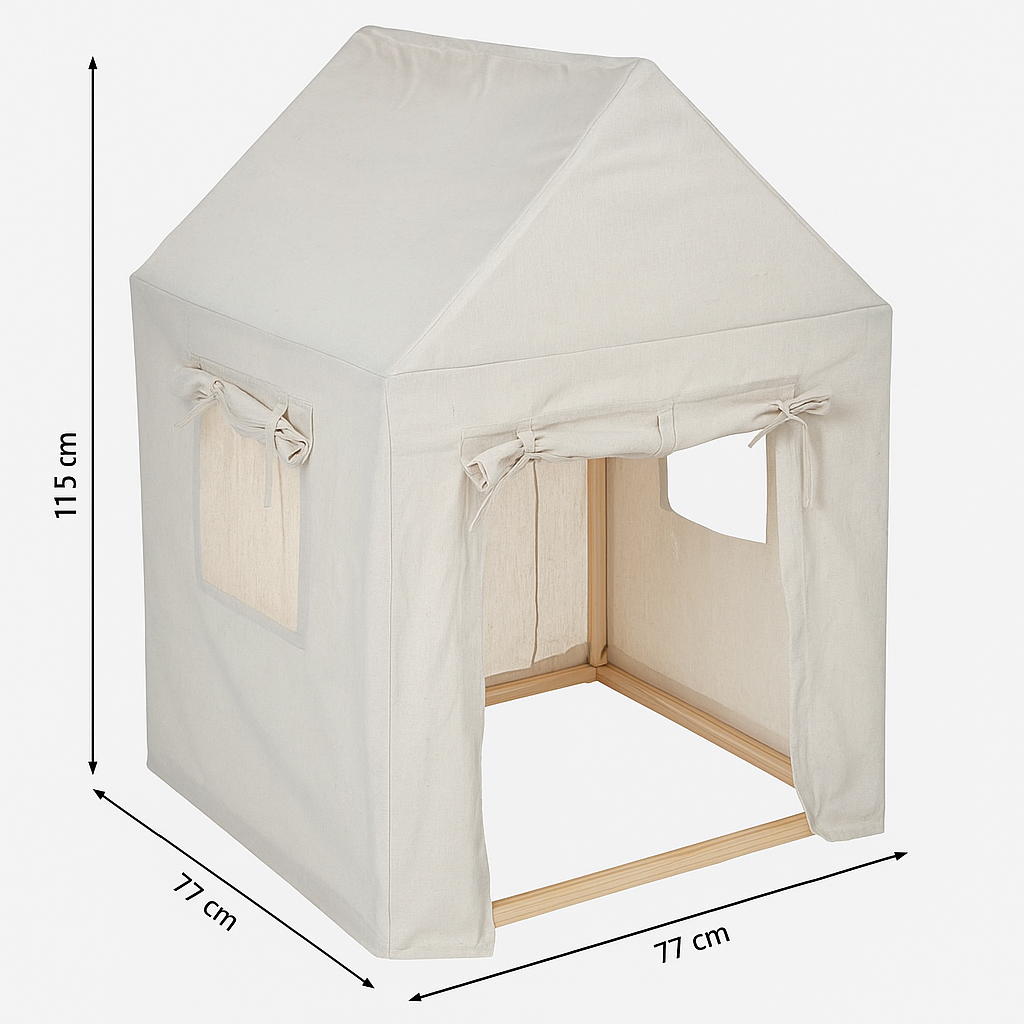 Utilizare: Căsuța este recomandată pentru interior și poate fi amplasată în dormitorul copilului, în camera de joacă sau într-un colț dedicat activităților liniștite. Este potrivită pentru crearea unui spațiu personal în care copilul să se simtă în siguranță și confortabil.