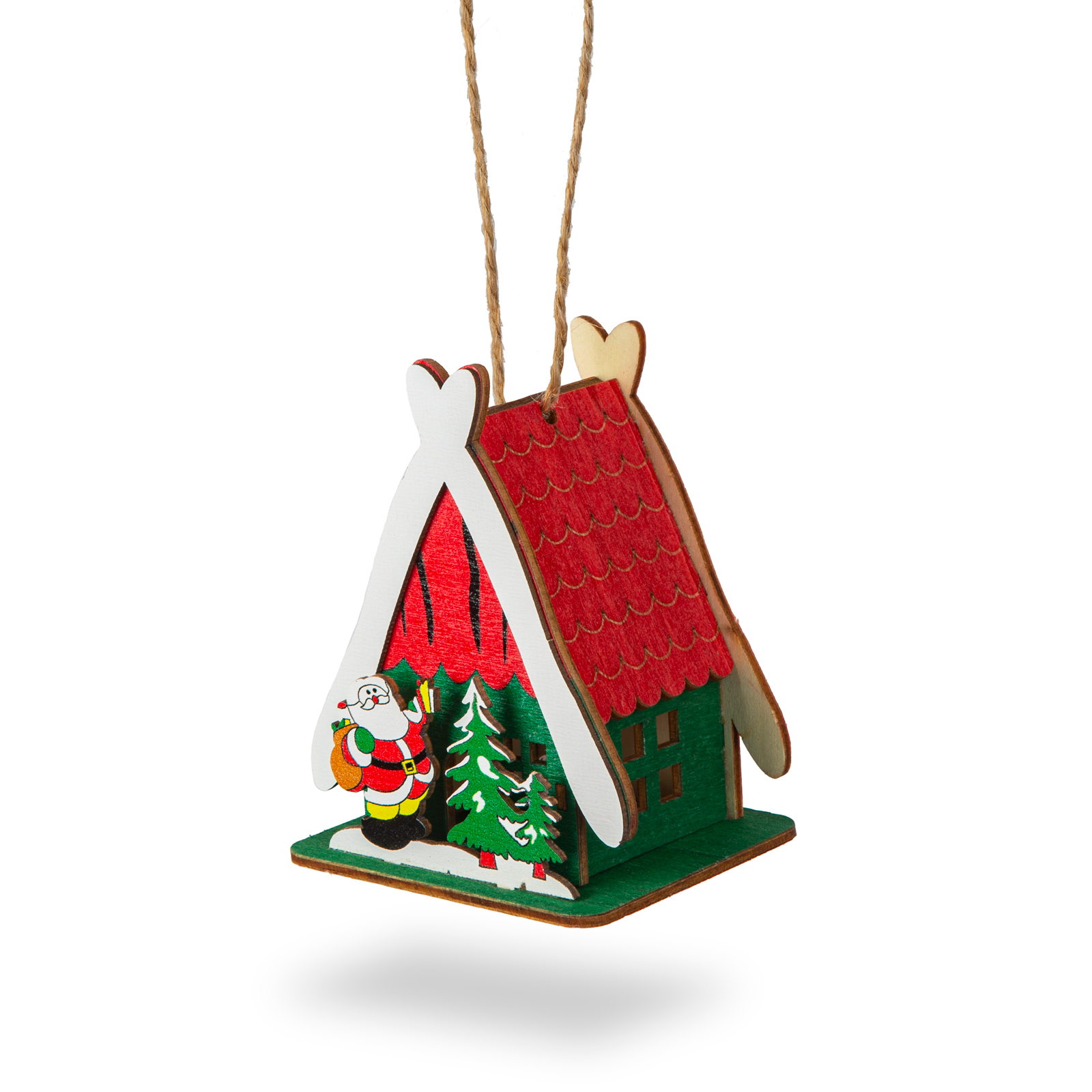 Casuță de Crăciun din lemn cu led - 2 tipuri - 6,9x8,9x6 cm - 12buc/ Best CarHome