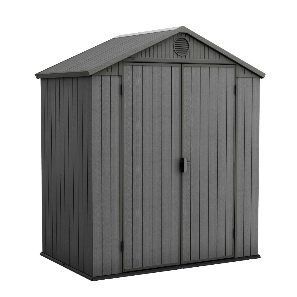 Căsuță de grădină Curver Darwin 6x4 din plastic gri, cu uși duble
