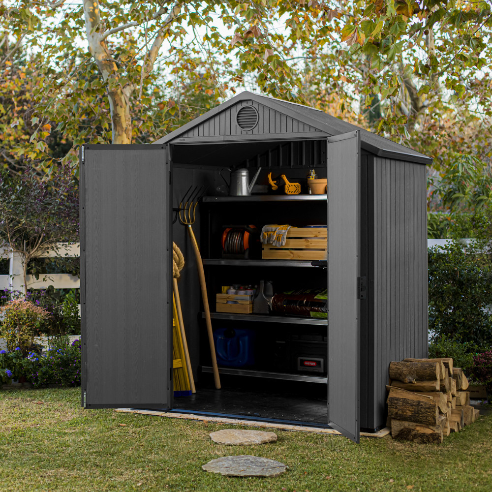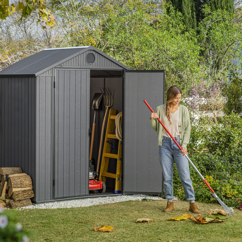 Descoperă Căsuță de grădină din plastic Darwin 6x4 practicitate și aspect elegant! Cumpără acum și bucură-te de beneficiile curățeniei grădinii tale și de depozitarea convenabilă.