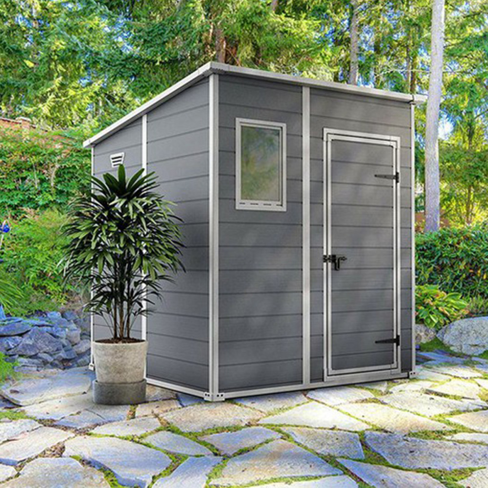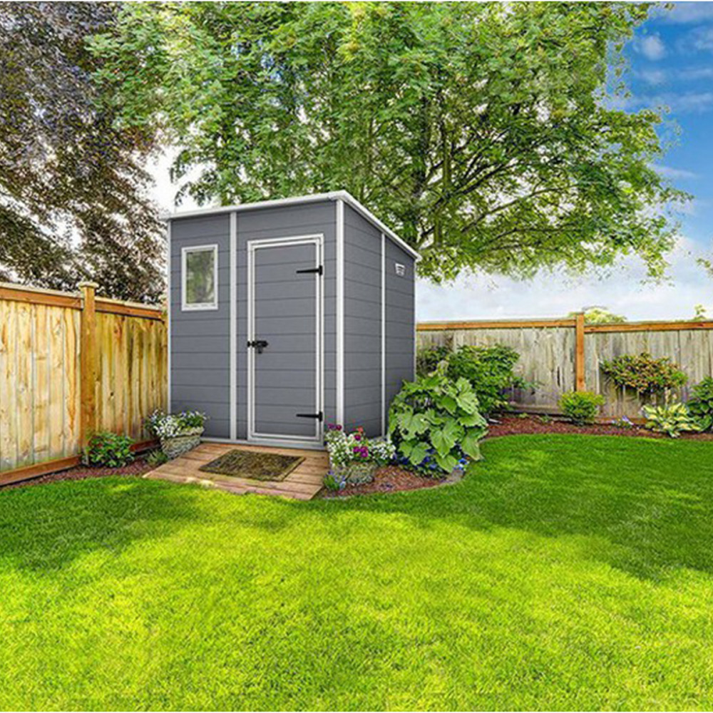 Căsuță de grădină Curver Manor 6x6 din plastic, gri, cu podea și protecție UV