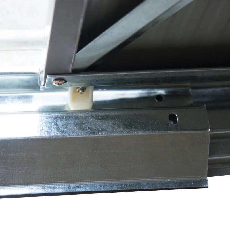 - Dispune de doua usi glisante pentru acces facil in interior, corespunzator cu spatiul larg pe care magazia il ofera.