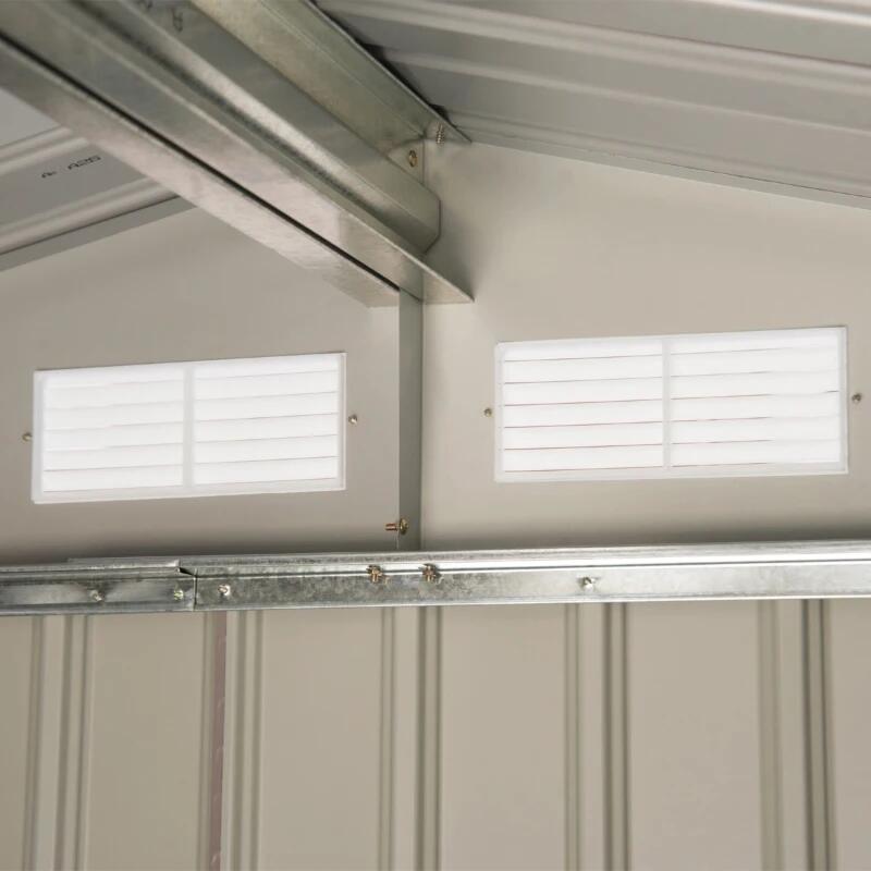 Casuta de gradina pentru depozitare unelte, cu structura baza inclusa, metal si PP, gri, 213x130x185 cm