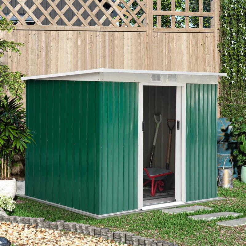 Casuta de gradina pentru depozitare unelte, otel, verde, 280x130x172 cm