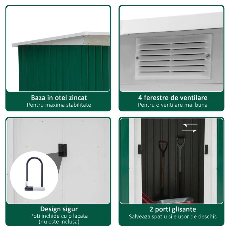 Specificatii Casuta gradina depozitare unelte, otel, verde,