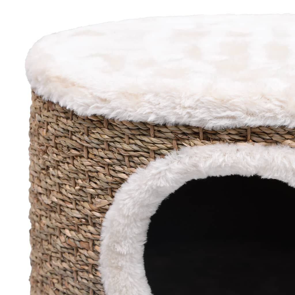 Dispune de un culcuș confortabil, cu o intrare mare pentru ca pisicile dvs. să se retragă și să tragă un pui de somn. Poate fi folosit și ca un copac pentru cățărare, unde pisicile dvs. să se poată urca. Covoarele din iarbă de mare le permit micuțelor dvs. prietene să-și ascută ghearele.