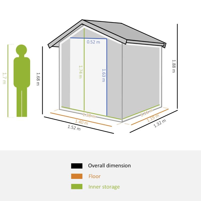 Casuta/magazie/sopron de gradina pentru depozitare unelte, cu structura baza inclusa, otel si PP, gri, 152x132x188 cm
