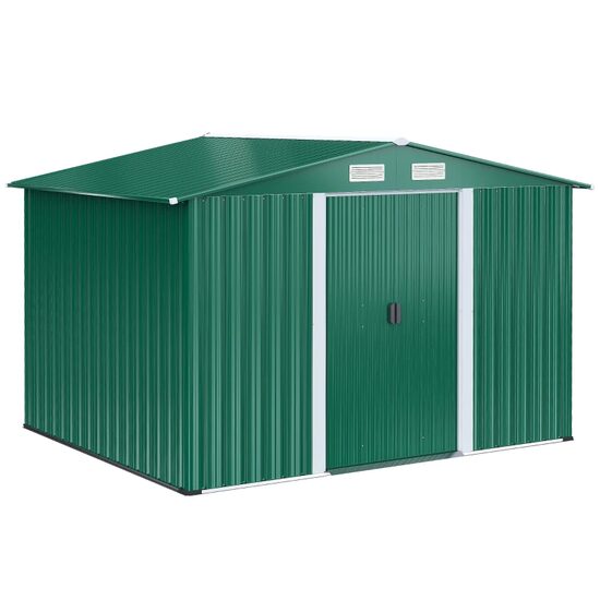 Casuta/magazie/sopron de gradina pentru depozitare unelte, cu structura baza inclusa, otel si PP, verde, 258x206x178 cm