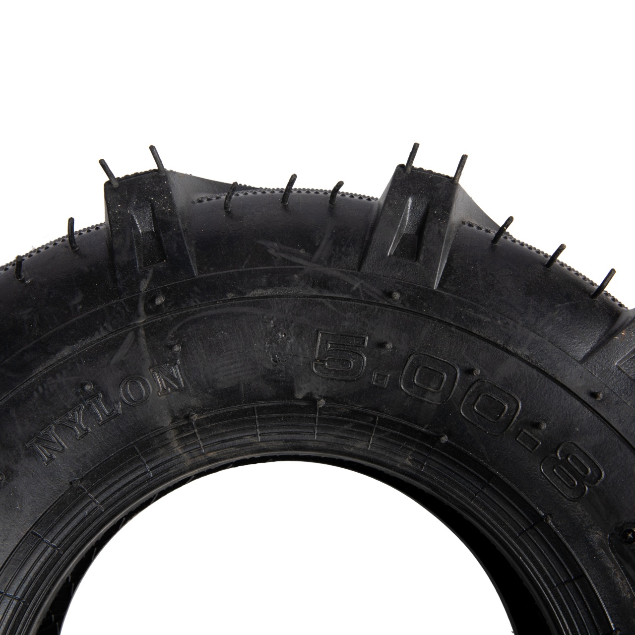 Utilizare: recomandat pentru roțile de motocultor compatibile cu dimensiunea 5.00-8. Verifică dimensiunea înscrisă pe anvelopa veche și starea jantei înainte de montaj. După montare, umflă camera la presiunea recomandată de echipament.
