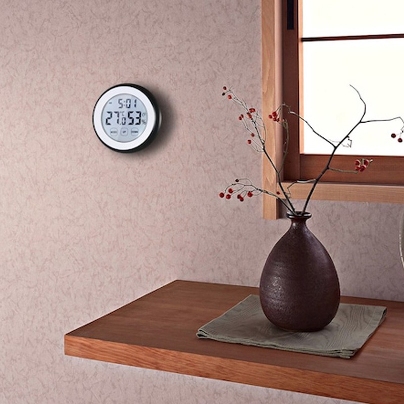 Ceas digital LED cu touchscreen, alarma, temperatura, umiditate, 7.7 cm, negru