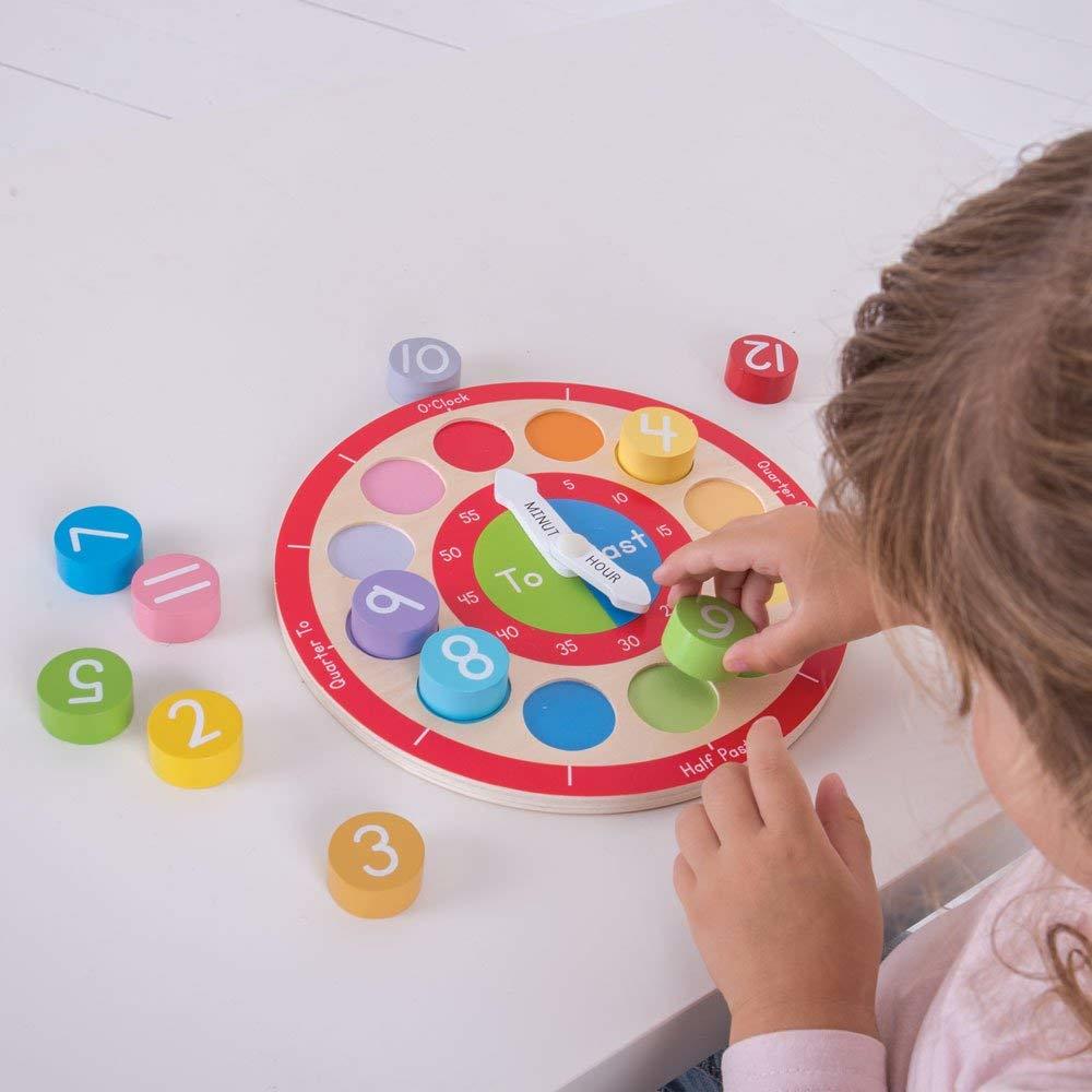 Ceas educativ din lemn colorat pentru invatarea orei, BigJigs