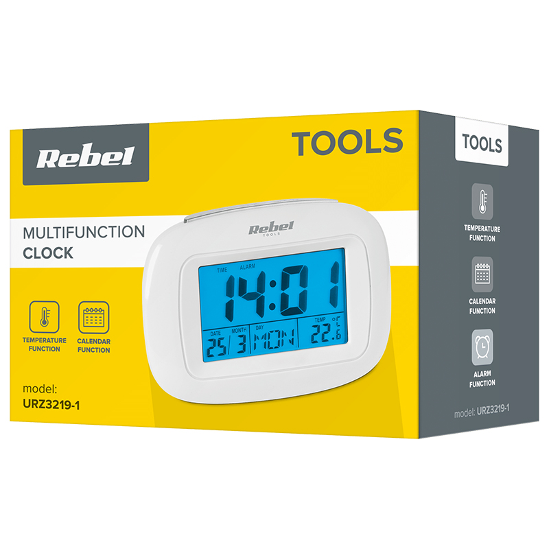 Functii: ora, data, ziua saptamanii, temperatura, ceas alarma, functie de amanare, cronometru