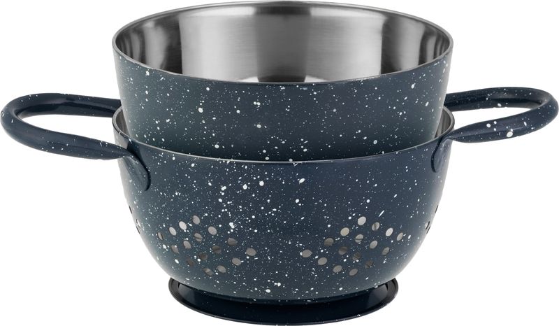 Elegantný cedník s misou MagicHome prinášaštýlový dizajn a praktickosť v jednom.Vďaka svojim kompaktným rozmerom, rukovätiam a špeciálnej povrchovej úprave je ideálny na každodenné použitie pri príprave jedál.