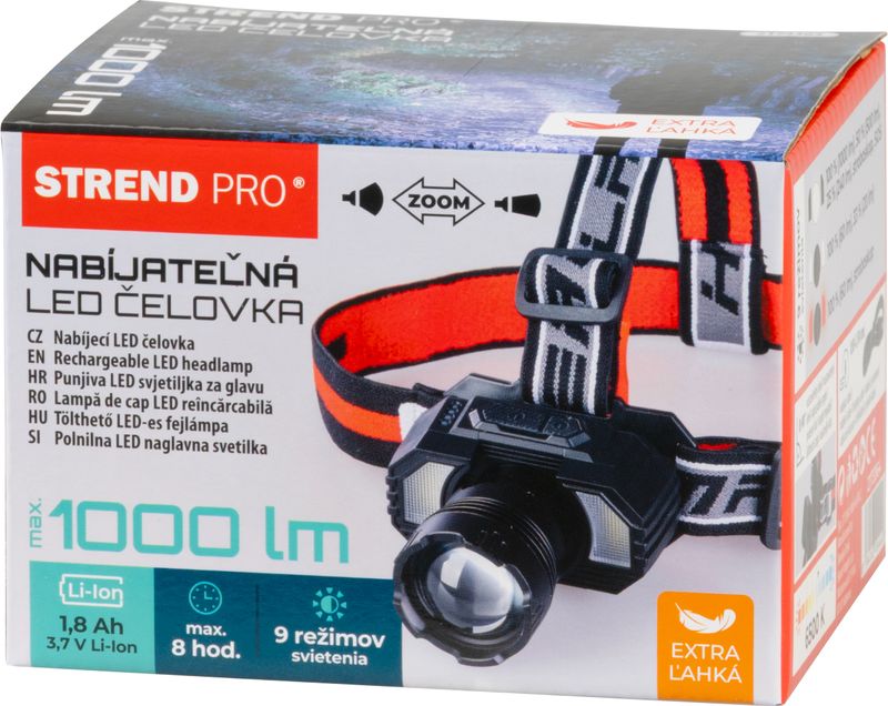 Čelovka Strend Pro Headlight XL121807, LED, 1000 lm, ZOOM, 1800 mAh, USB nabíjanie