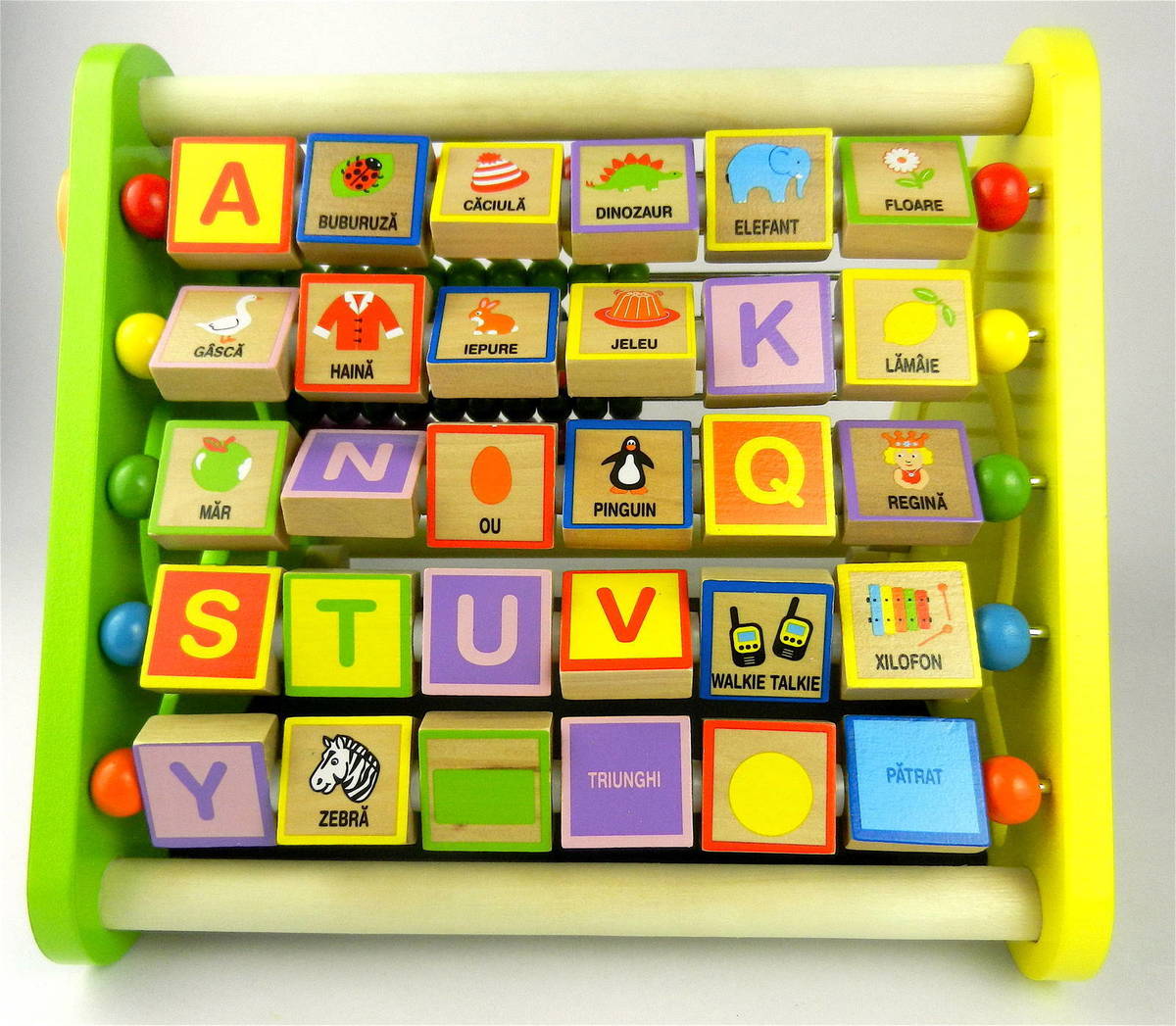 prin cuburile colorate, acestia vor invata alfabetul, fiecare cub avand o litera pe o latura si un cuvant care incepe cu litera respectiva pe partea opusa