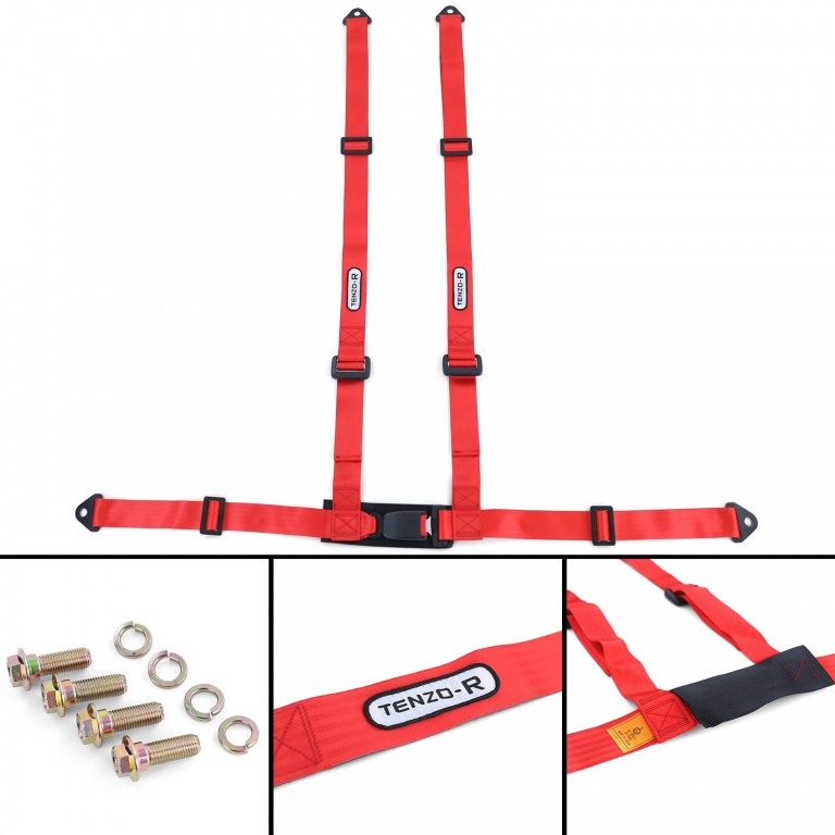 Centura de siguranță Tenzo-R Sport cu 4 puncte, roșie, cu marcaj E Performance AutoTuning