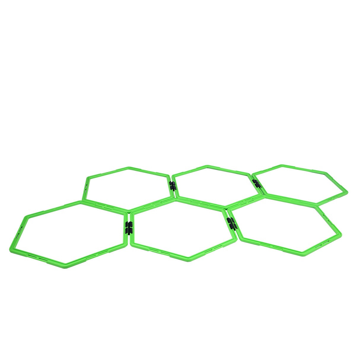 Cercurile hexagonale pentru coordonare HMS SKR06 va permit sa efectuati multe exercitii pentru a imbunatati viteza, flexibilitatea, reflexele, agilitatea, puterea si coordonarea motorie. Orice configuratie garanteaza o gama larga de posibilitati de exercitiu. Acesta va functiona in orice domeniu de sport ca element suplimentar de antrenament sau ca incalzire inainte de exercitii ulterioare. Pregatirea periodica are, de asemenea, un efect pozitiv asupra stabilitatii si rezistentei articulatiilor. Multumita Cercurilor hexagonale pentru coordonare HMS SKR06, puteti antrena precizia pasilor si in plus, cresteti viteza in mod regulat.
