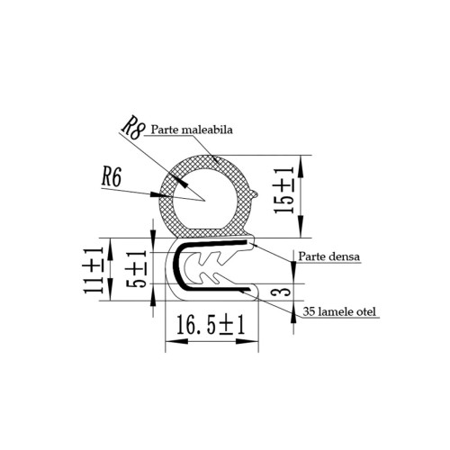 - Material: cauciuc rezistent cu insertie metalica pentru fixare