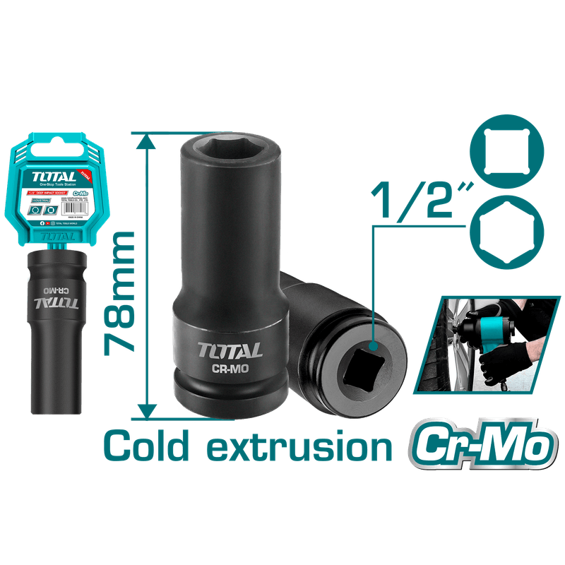 Cheie tubulară de impact TOTAL 14 mm, 1/2", Cr-Mo, lungime 78 mm