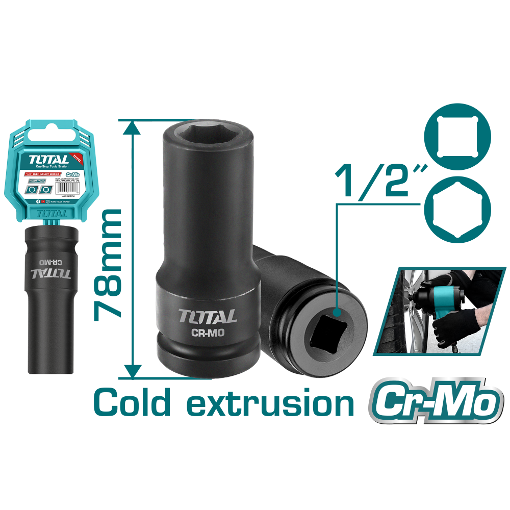 Cheie tubulară de impact TOTAL 19 mm, 1/2", Cr-Mo, lungime 78 mm