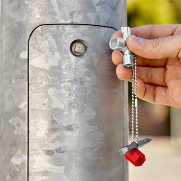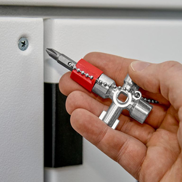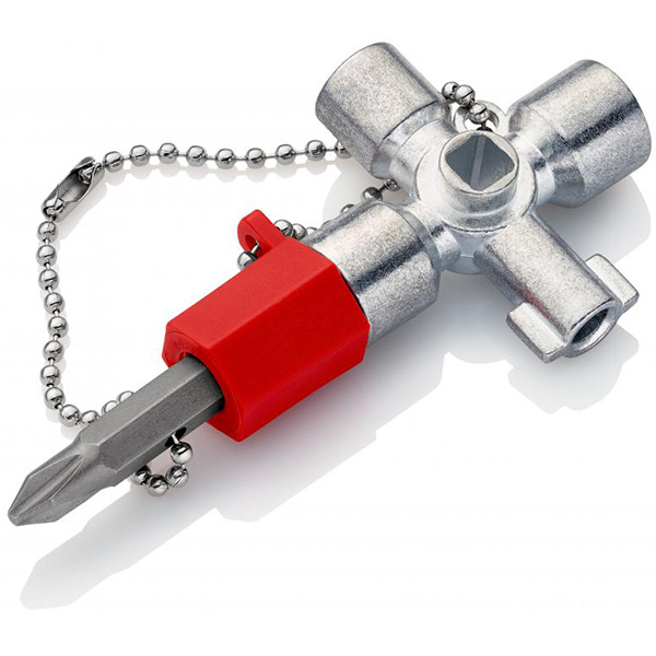 Pentru tablouri de comanda, pentru sistemele de inchidere ale instalatiilor de alimentare cu gaz, apa si electricitate. Pentru instalatiile tehnice din cladiri, cum ar fi instalatia de climatizare si ventilatie, valve de inchidere, panouri de comanda a retelei etc.. Cu adaos de bit: crestat 1,0 x 7 mm si crestat in cruce PH2. Cu adaptor pentru bituri de 1/4" prins cu un lant de fixare. Locas suplimentar pentru bituri de 1/4" pe un brat. varianta scurta, lungimea totala a bratului: 44 mm.