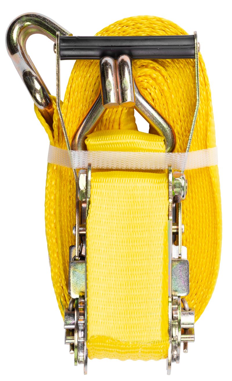 Utilizare recomandată: trece chinga peste/în jurul încărcăturii, fixează capetele, apoi tensionează cu clichetul până la stabilizarea completă. Verifică periodic prinderea, mai ales la drum lung sau pe teren denivelat.