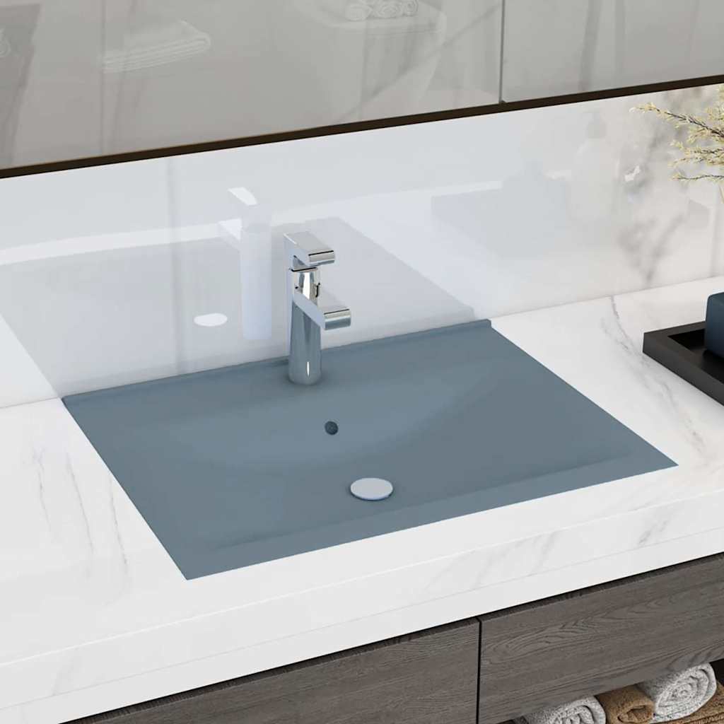 Chiuvetă baie lux, orificiu robinet, bleu mat 60x46 cm ceramică GartenMobel Dekor