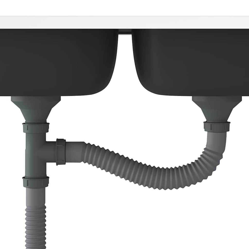 Această chiuvetă de bucătărie cu chiuvete duble și un set de scurgere este un plus ideal pentru decorul bucătăriei dvs. existent.