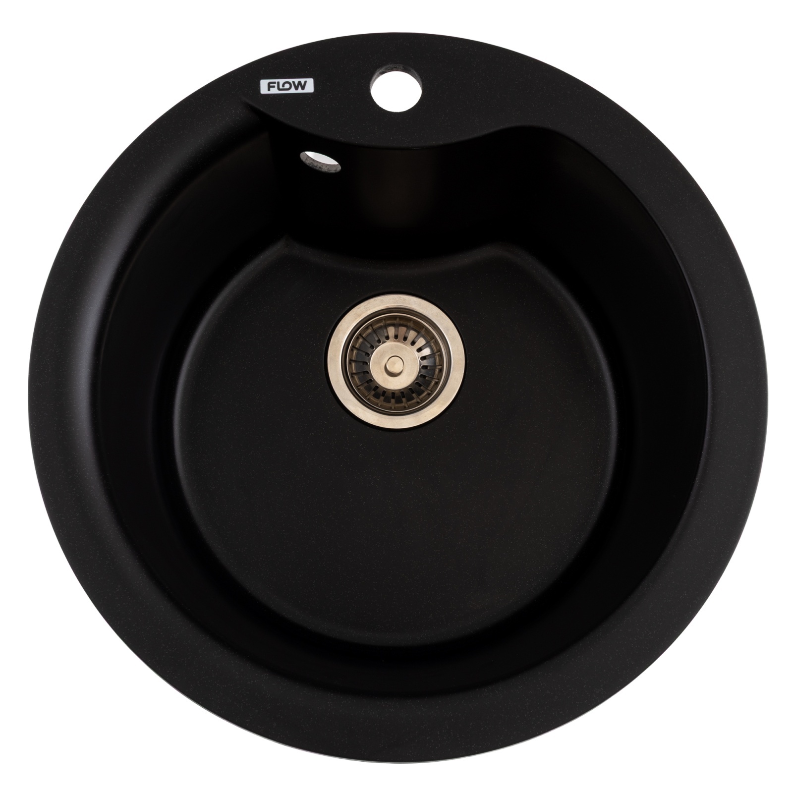 Chiuvetă bucătărie din granit rotundă WAVE Flow, negru metalic, 485x210 mm