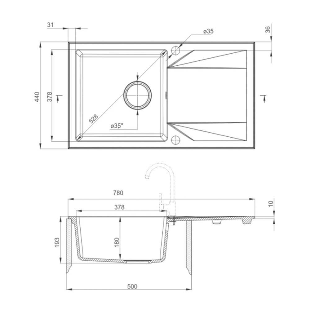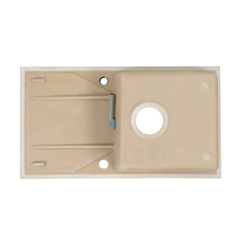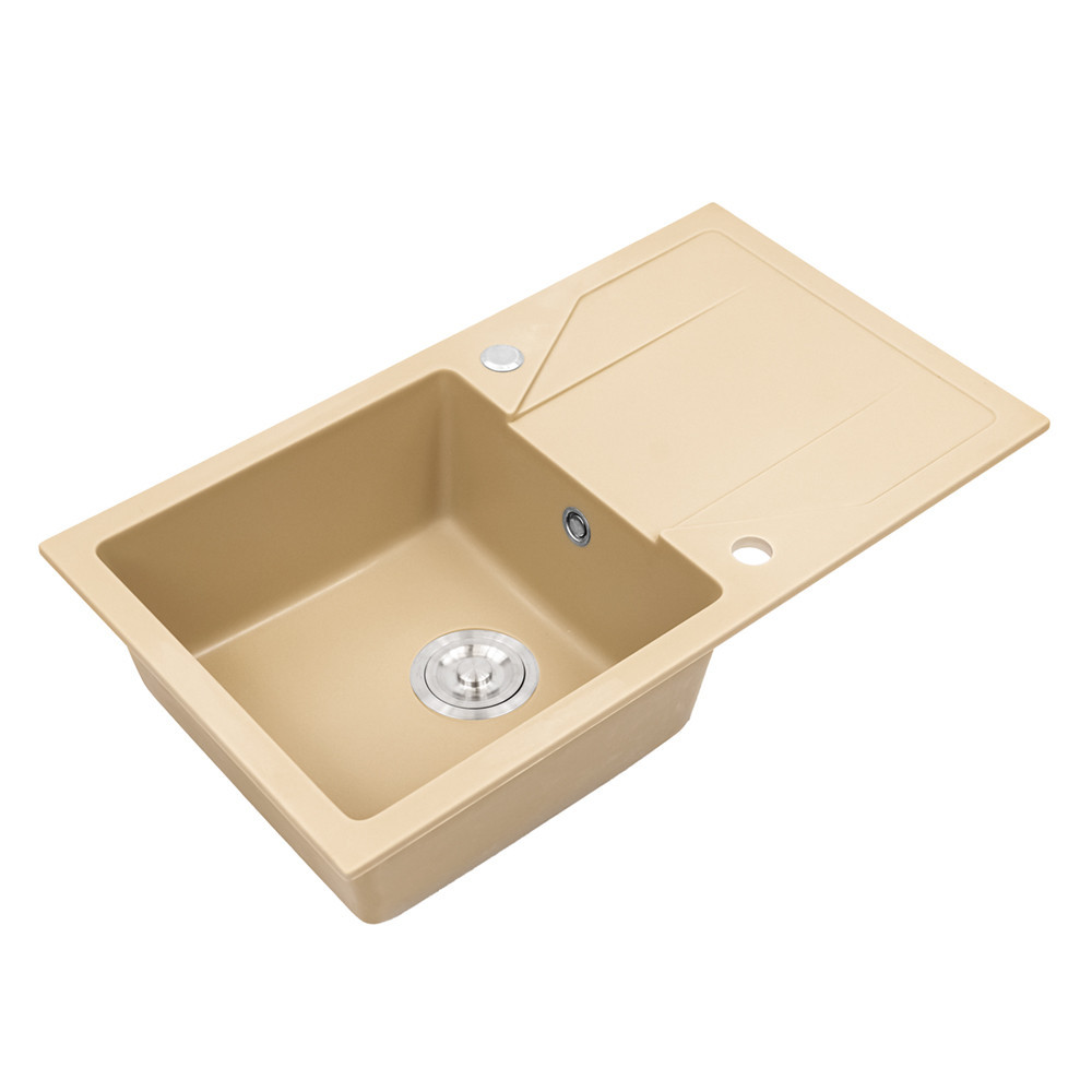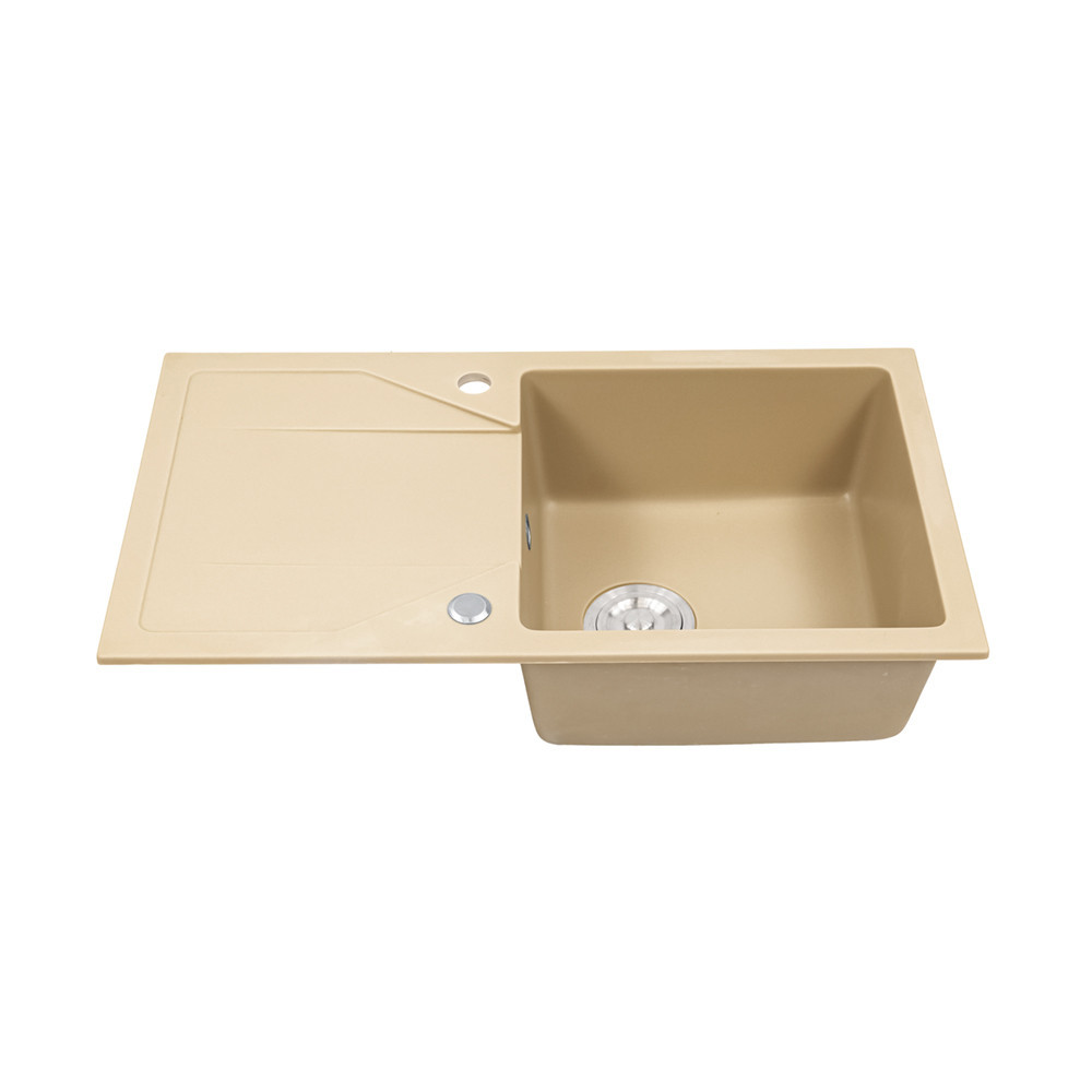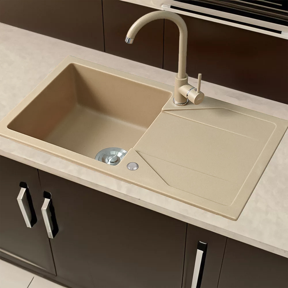 Alege chiuveta pătrată din granit bej Gori cu scurgător și creează o bucătărie unică, elegantă și practică, unde sarcinile zilnice din bucătărie pot fi îndeplinite cu ușurință!
