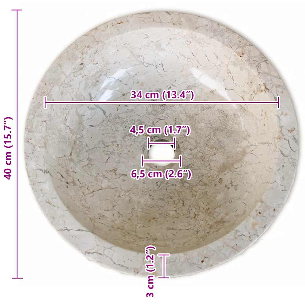 Această chiuvetă rotundă, realizată din marmură naturală, va fi un element de decor elegant pentru orice baie sau spălătorie.