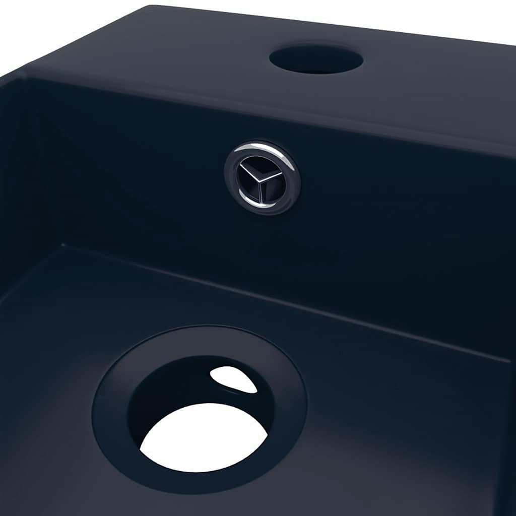 Chiuvetă de baie cu preaplin, albastru închis, ceramică GartenMobel Dekor