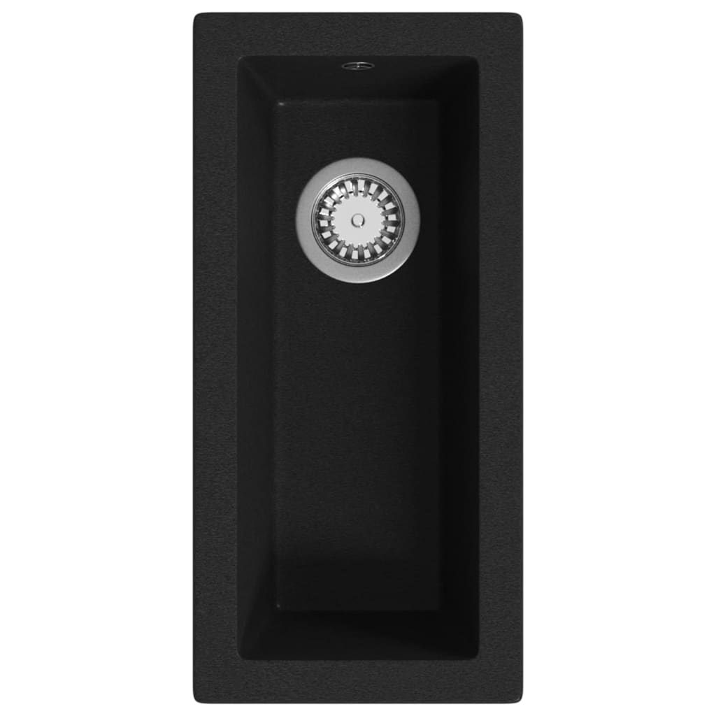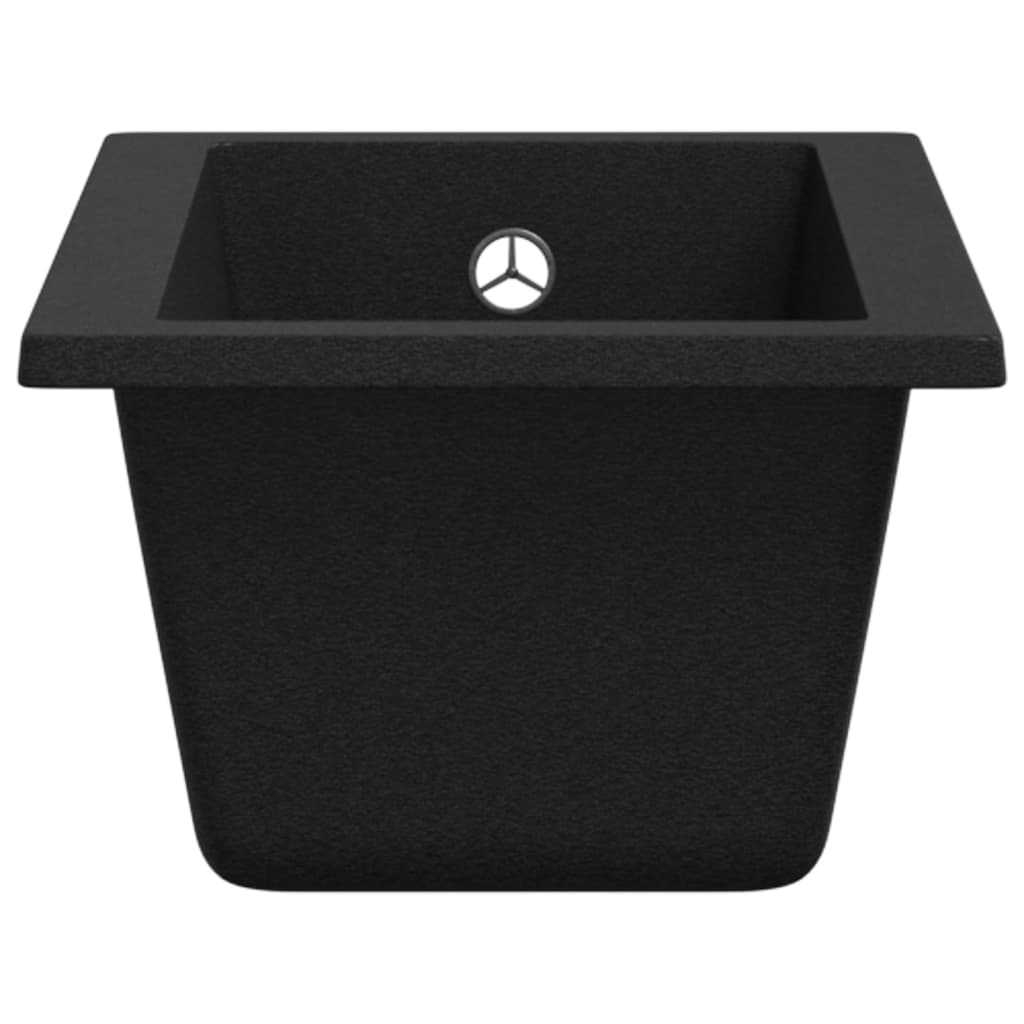Chiuvetă de bucătărie cu orificiu de preaplin, negru, granit GartenMobel Dekor