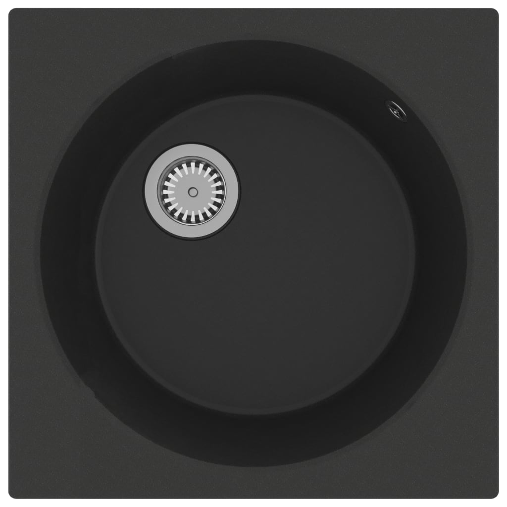 Chiuvetă de bucătărie cu orificiu de preaplin, negru, granit GartenMobel Dekor