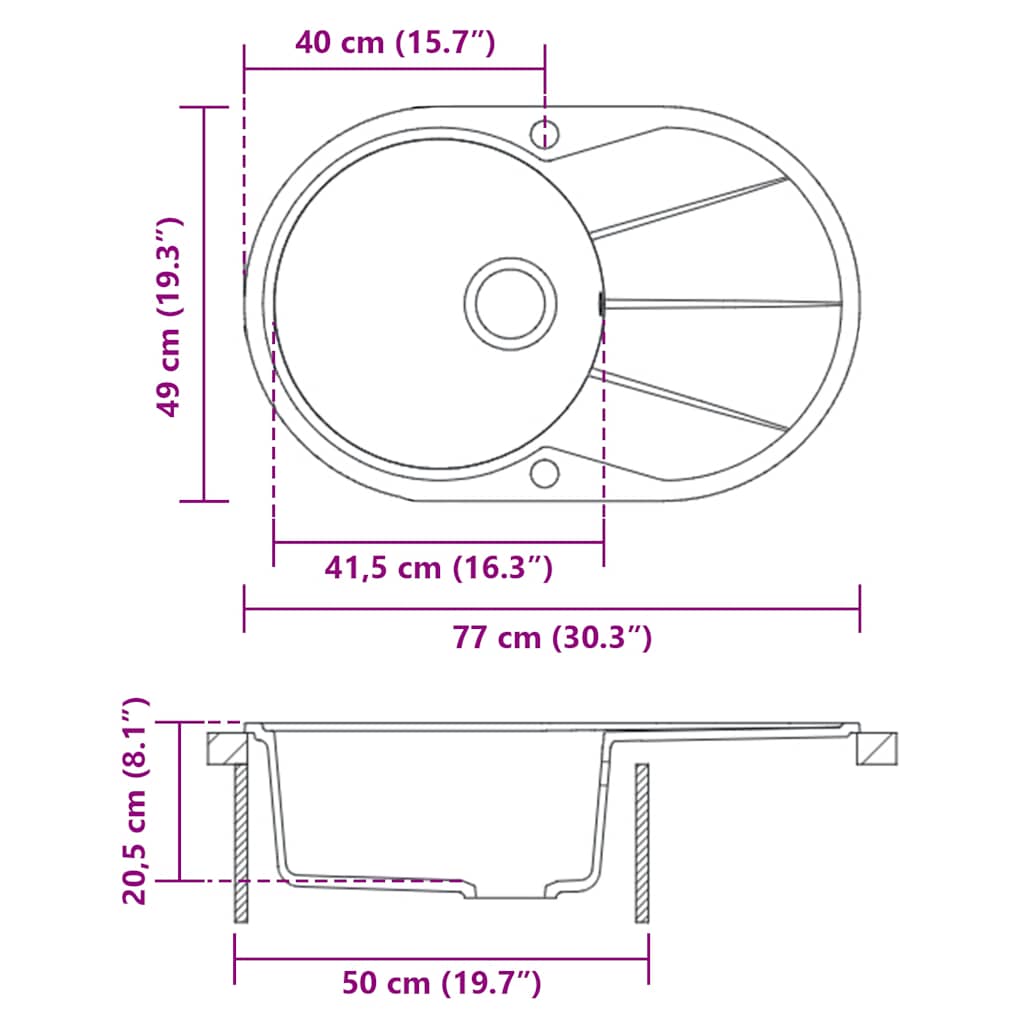 Granitul de înaltă calitate face chiuveta extrem de rezistentă la căldură, zgârieturi și la impact, precum și ușor de curățat. În plus, este complet reversibilă, ceea ce înseamnă că această chiuvetă poate fi montată atât pe partea dreaptă, cât și pe cea stângă. O sită pentru scurgere este inclusă pentru îndepărtarea ușoară a resturilor.