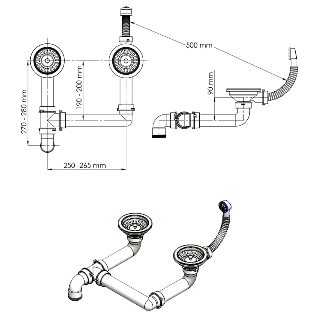 - Setul de sifon tip coș este inclus pentru îndepărtarea ușoară a resturilor