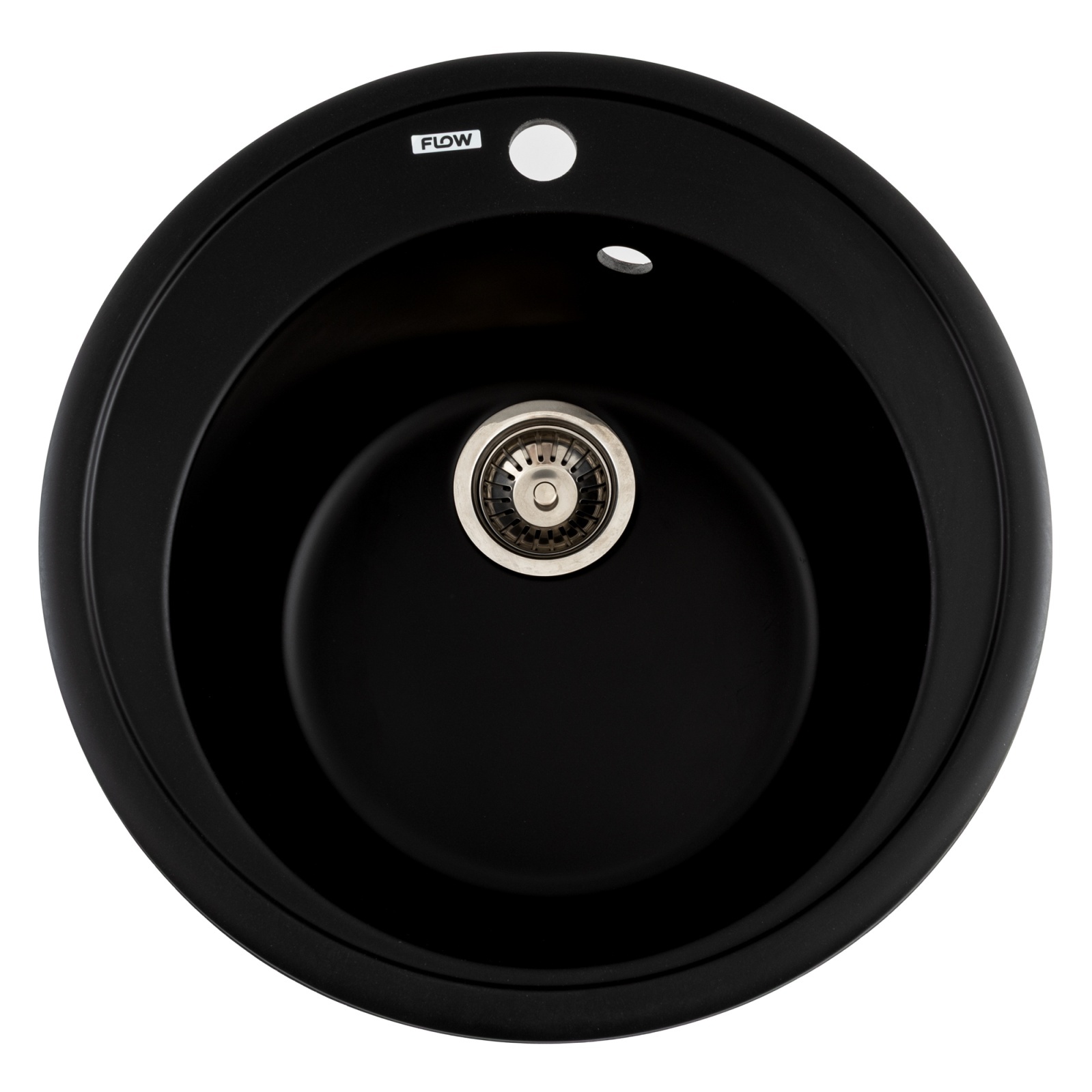 Chiuvetă de bucătărie din granit rotundă SUN Flow, negru antracit, 510x200 mm