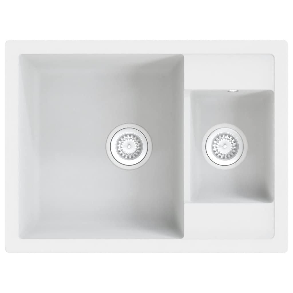 Chiuvetă de bucătărie dublă cu orificiu de preaplin alb granit GartenMobel Dekor