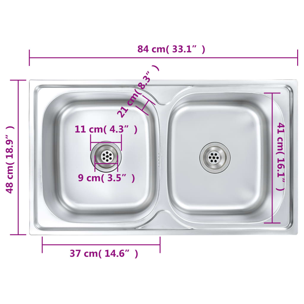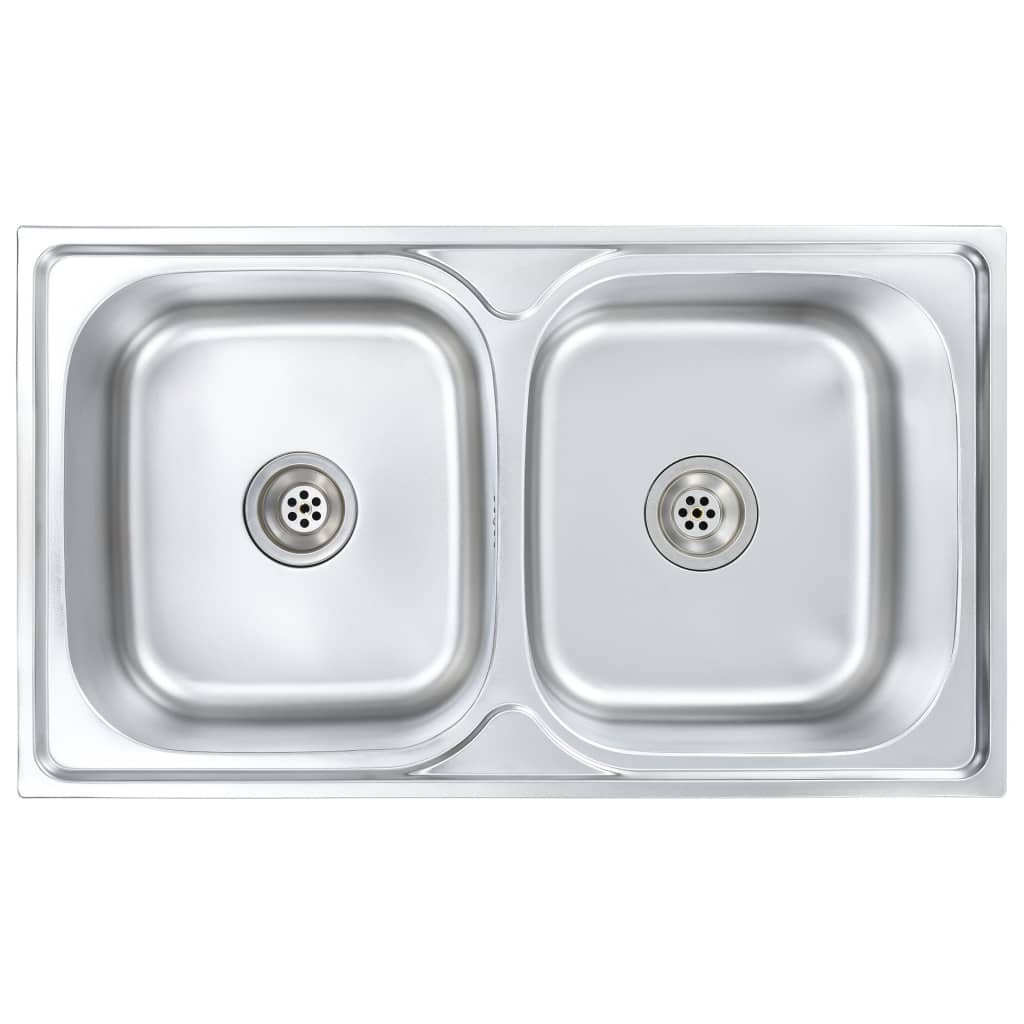 Chiuvetă de bucătărie dublă cu sită și sifon, oțel inoxidabil GartenMobel Dekor