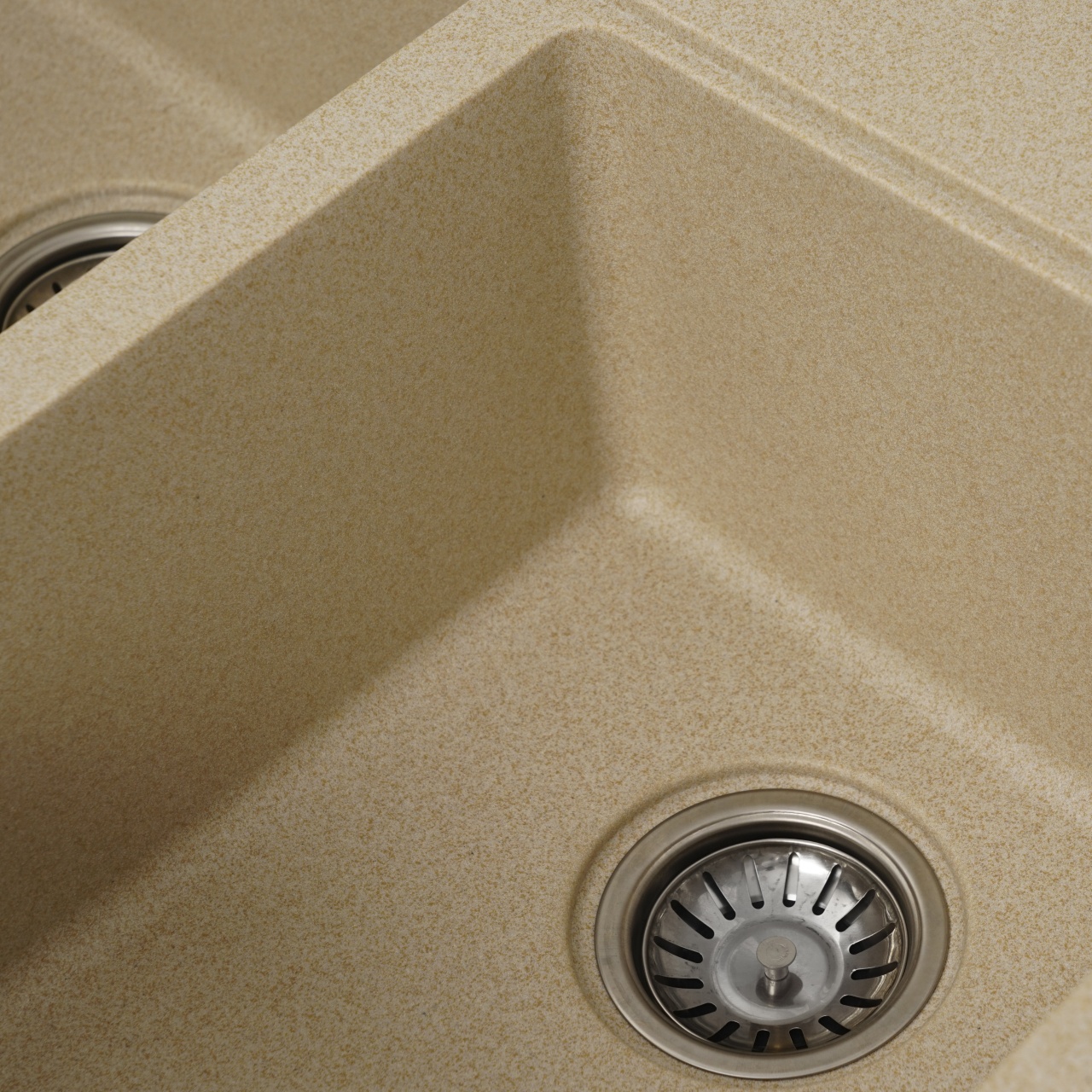 Chiuveta de bucătărie Elefant Premium Harmony Chiuveta de bucătărie Elefant Premium Harmony este un model modern și funcțional, ideal pentru bucătăriile care necesită eficiență și versatilitate. Construită dintr-un material compozit durabil, format din 80% granule de granit și 20% rășini sintetice , aceasta oferă o rezistență ridicată la zgârieturi, temperaturi extreme și impact. Designul cu două cuve permite organizarea eficientă a activităților din bucătărie, facilitând spălarea și clătirea vaselor în mod simultan. Chiuveta este destinată montajului pe blat , iar sistemul de scurgere 3 1/2” asigură evacuarea rapidă a apei. Detalii Tehnice: Dimensiune corp: 775x495/420 mm Dimensiune cuvă: 360/330x360x210/160 mm Diametru scurgere: 115/115 mm Număr cuve: 2 Scurgere: 3 1/2” Tip sifon: Simplu Montare: pe blat Material: 80% granule de granit, 20% rășini sintetice Culoare: Safari bej Producător: Elefant Premium Garanție: 2 ani Pachetul include: Sistem de scurgere Sistem de prindere pe blat