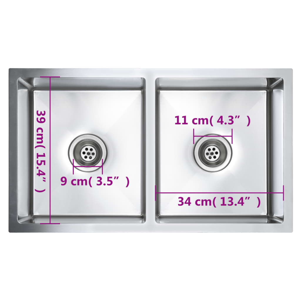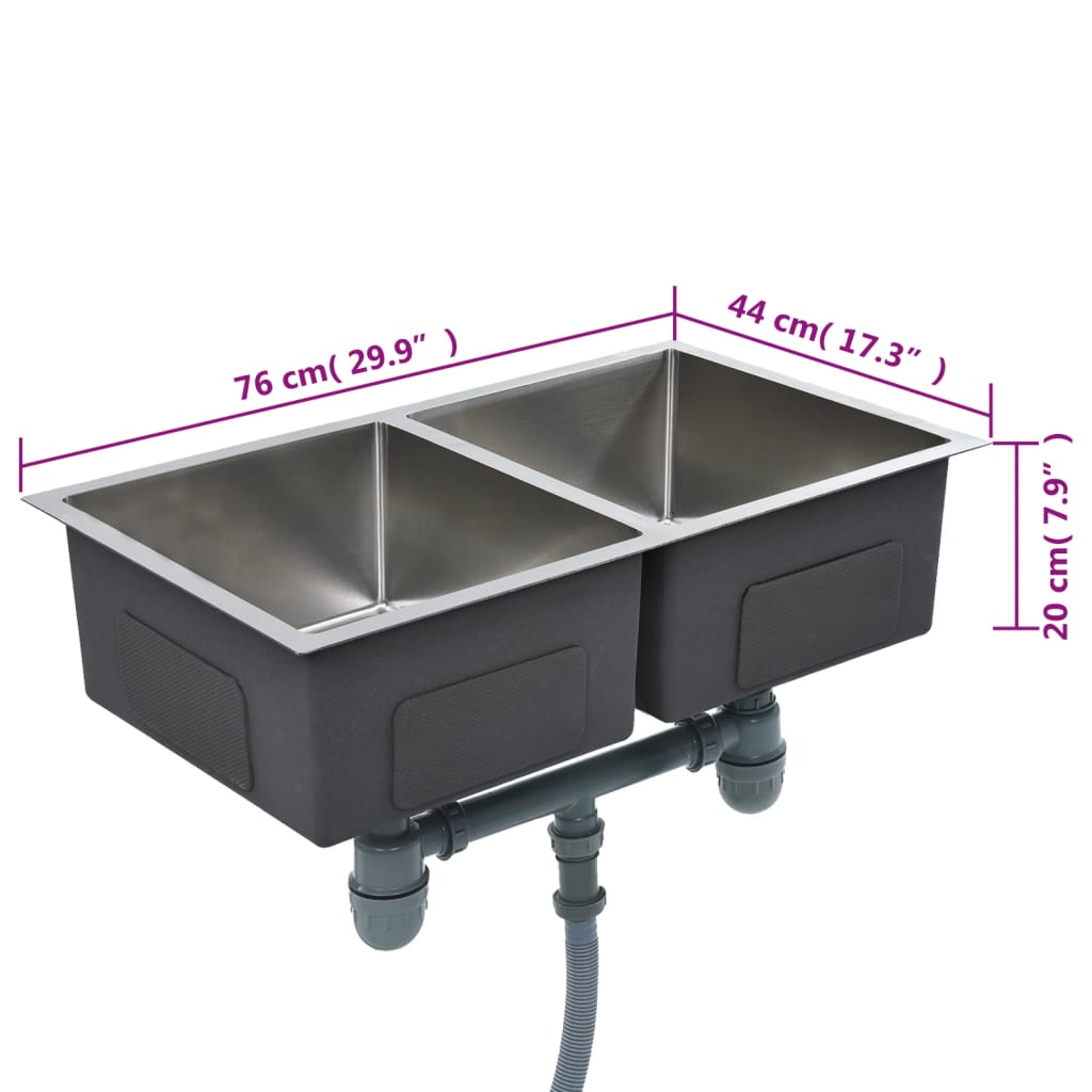 Combinând foarte bine funcționalitatea și designul, această chiuvetă cu o cuvă dublă este realizată manual din oțel inoxidabil de înaltă calitate, cu vopsea anticondens, rezistentă la mucegai, fără plumb și rezistentă la coroziune. Este izolată fonic cu suporturile de reducere a sunetului. În plus, vasul cu un design unic, cu un canal de scurgere în X, facilitează scurgerea rapidă, prevenind stagnarea apei pe fundul bazinului.