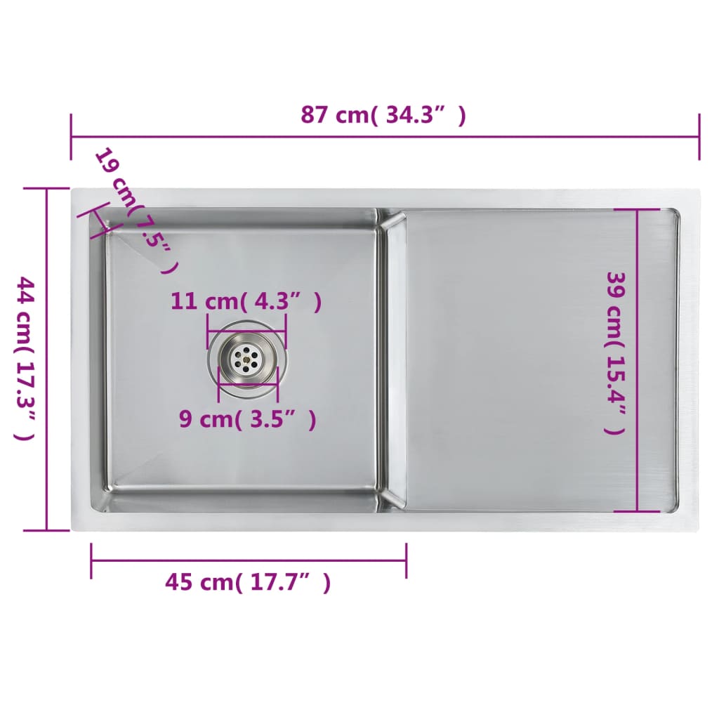Chiuvetă de bucătărie lucrată manual, oțel inoxidabil GartenMobel Dekor