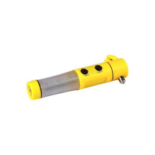 - Dispozitiv 4-in-1: ciocan pentru spart geamuri, taietor centura de siguranta, lanterna LED si lumina de avertizare rosie