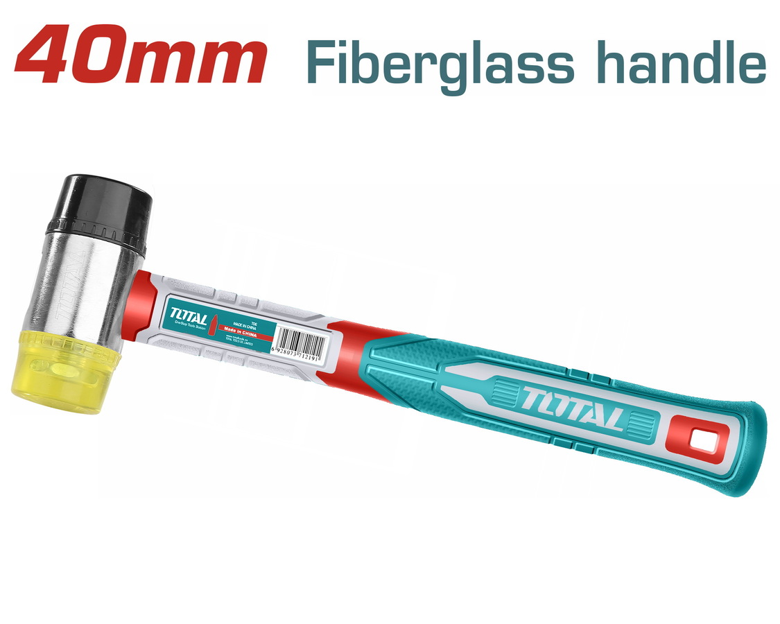 Ciocan cauciuc-plastic TOTAL 40 mm cu mâner din fibră de sticlă