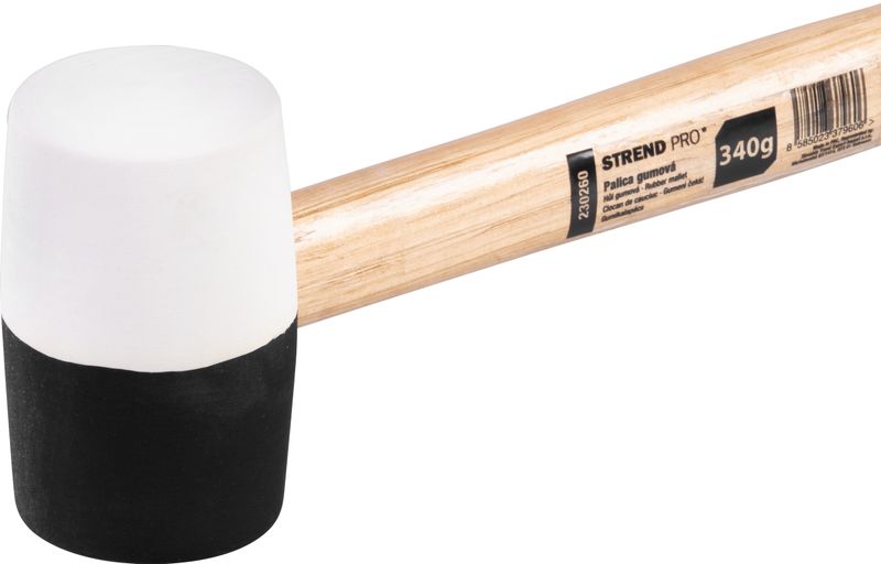 Ciocan de cauciuc Strend Pro 340 g, 290 mm, mâner din lemn, cap alb-negru