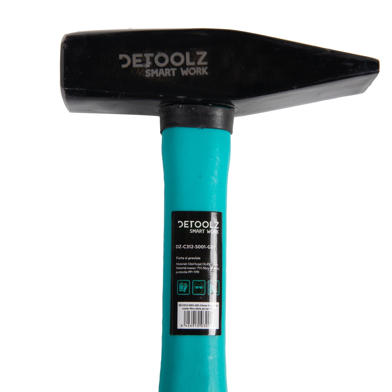Ciocan lăcătuș forjat 500g cu coadă din fibră de sticlă, Detoolz